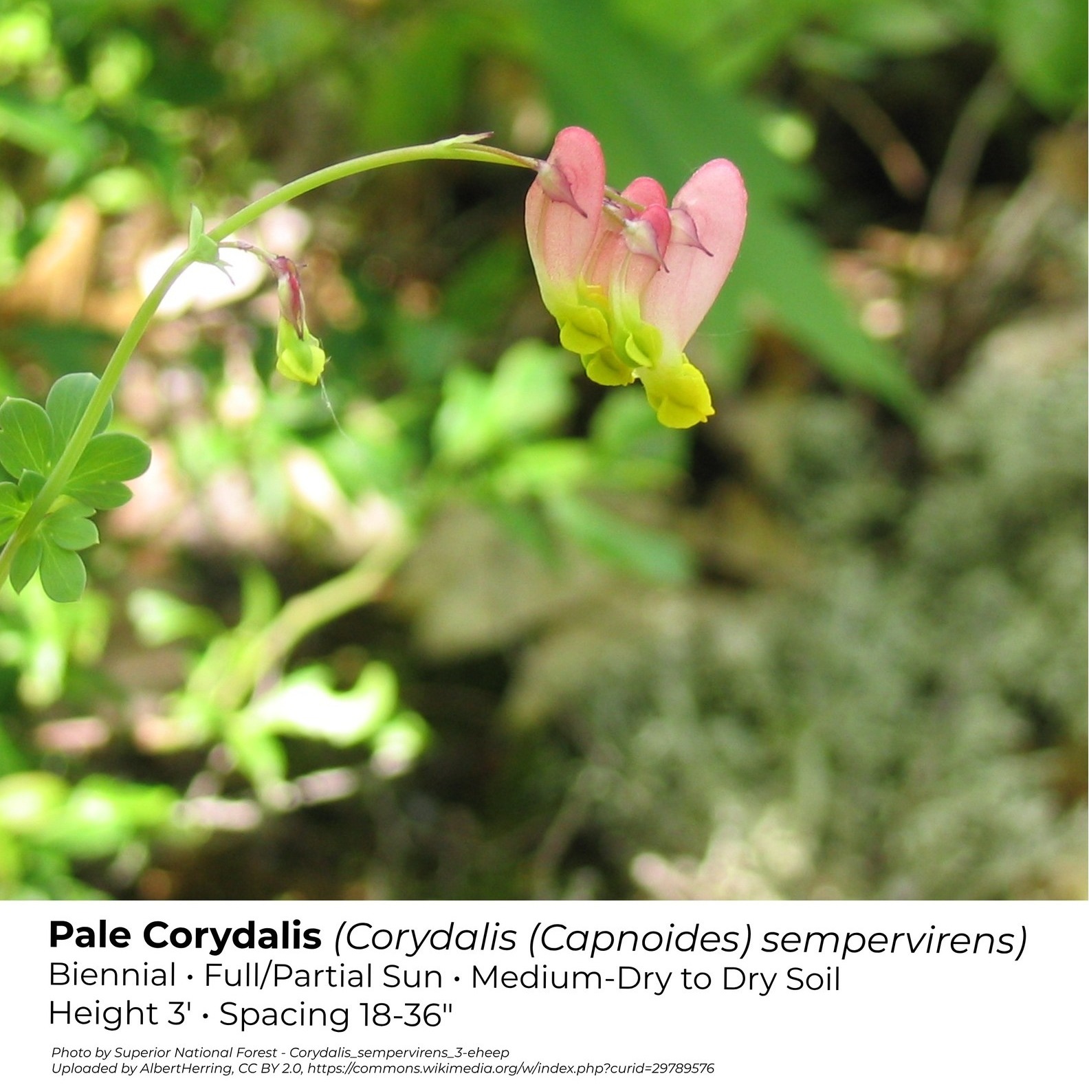Photo credit by Superior National Forest - Corydalis_sempervirens_3-eheep Uploaded by AlbertHerring, CC BY 2.0