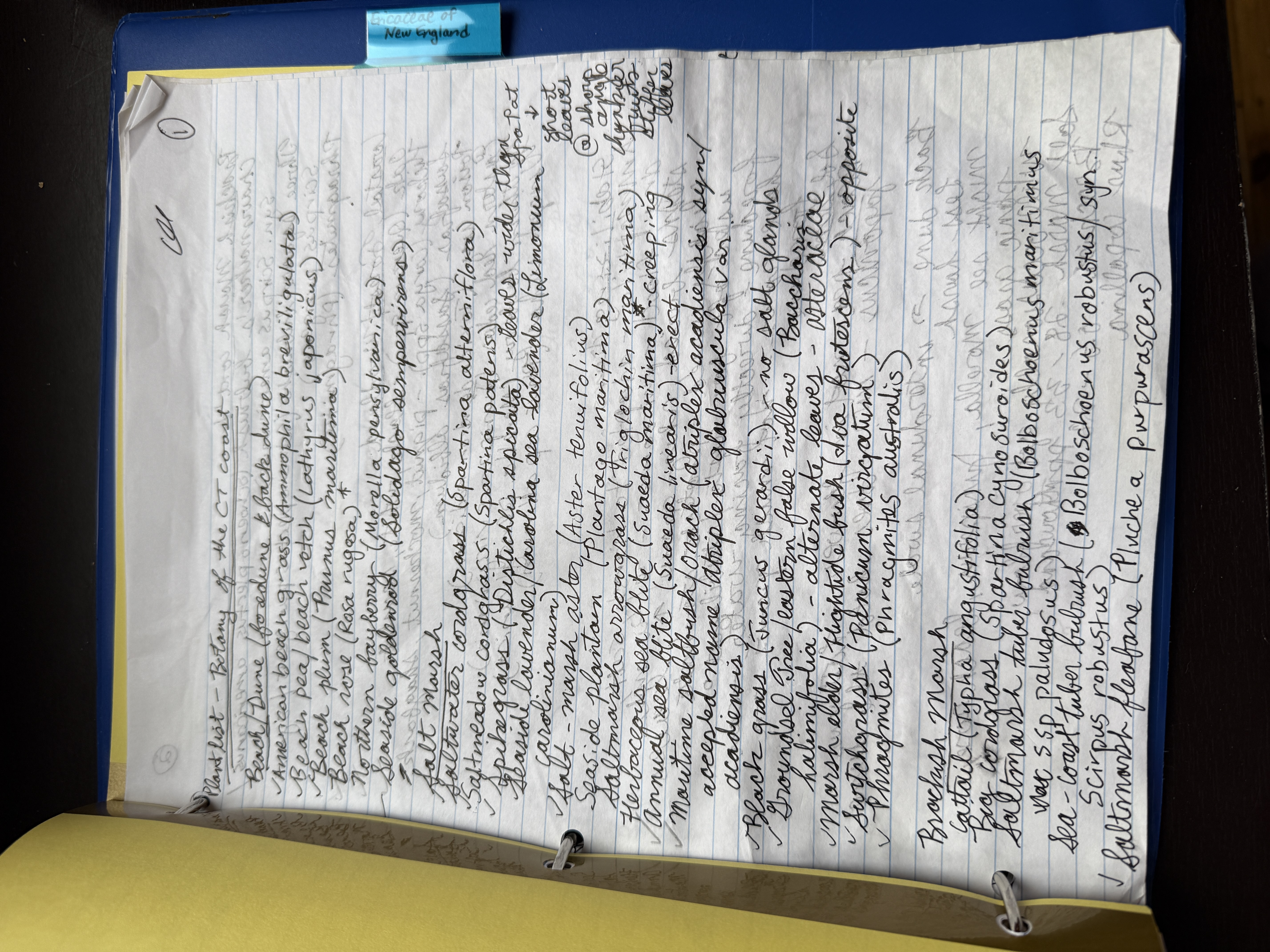 Some notes from the Botany of the Connecticut Coast field study I did recently. Of course I write in cursive, a script indecipherable to people under the age of 30 😆