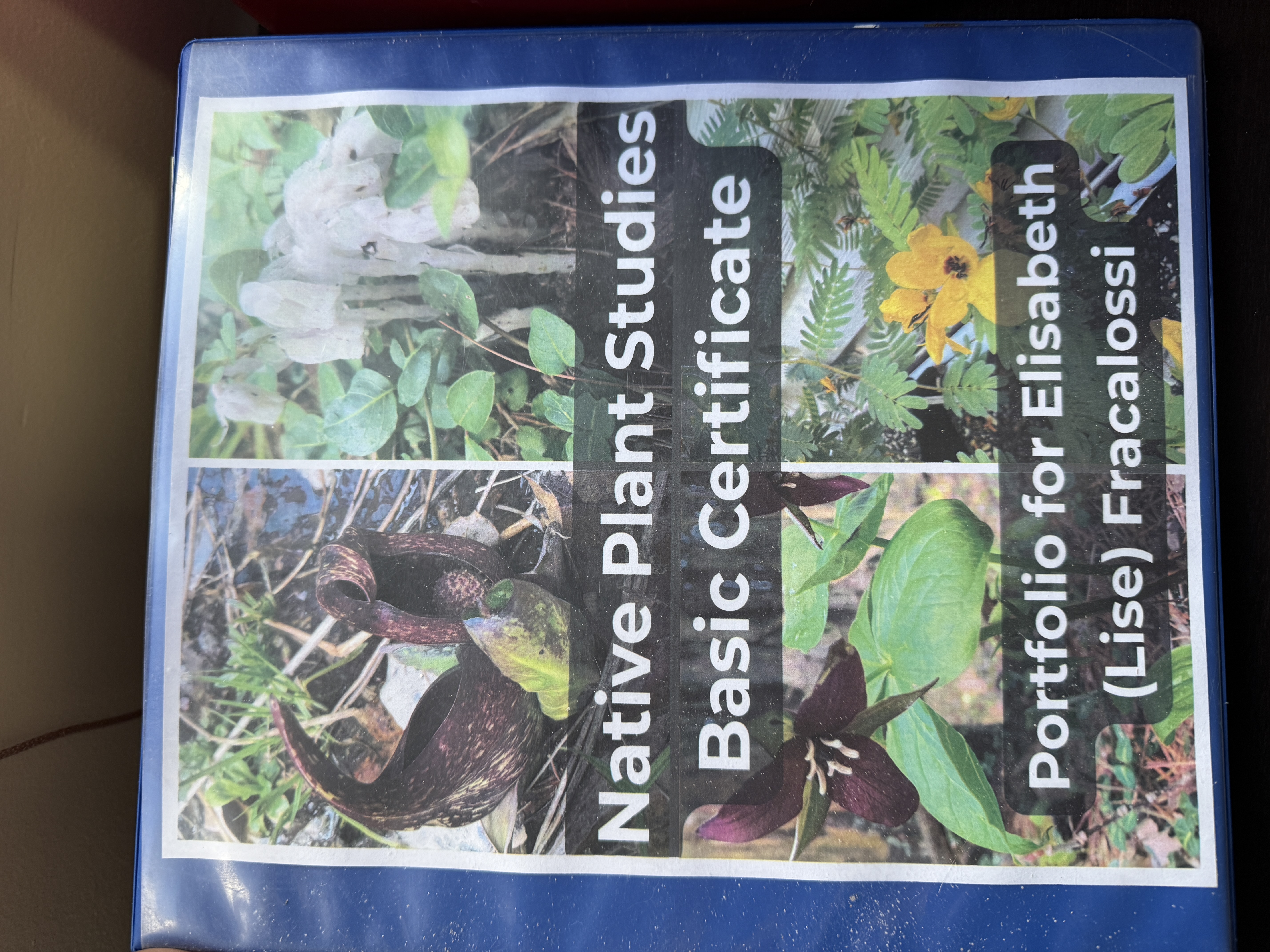 I’d already confirmed that two years of running a native plant nursery covered the community service requirement, so the last step was to put together my portfolio. Here’s the cover image I used for the (actual, physical) portfolio: